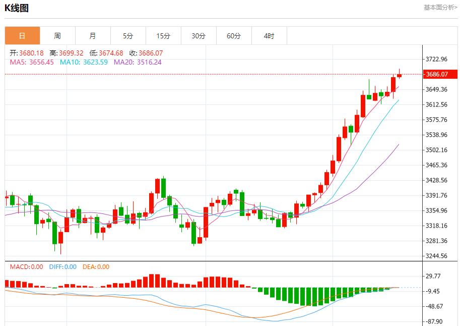 今日分析:在3674.00之上,看涨,目标价位为3703.00,然后为3715.00。