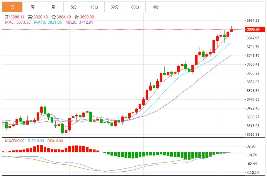 周一(10月6日),现货黄金目前位于3901.55美元/盎司附近,涨幅为0.39%。