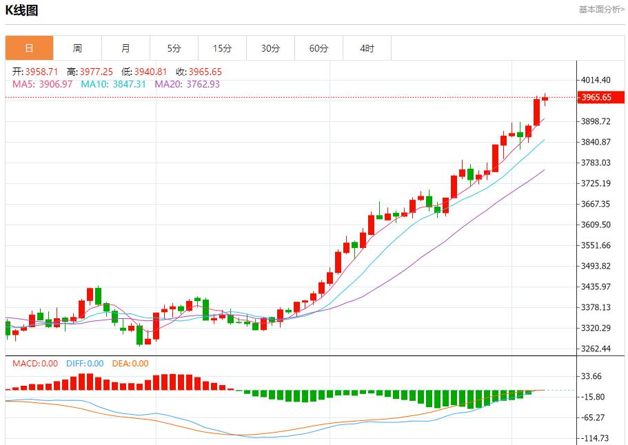 今日分析:在3940.00之上,看涨,目标价位为3977.00,然后为4000.00。