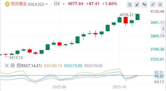 10月13日,周一欧洲时段上半段,黄金坚挺在历史高点附近,在基本面支撑的背景下似乎有望进一步升值。投资者现在似乎担心美国政府长期关门会影响经济表现。除此之外,新的中美贸易紧张局势和旷日持久的俄乌战争引发的持续地缘政治风险推动避险贵金属连续第二天走高。