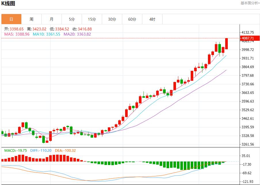 今日分析:在4000.00之上,看涨,目标价位为4090.00,然后为4128.00。