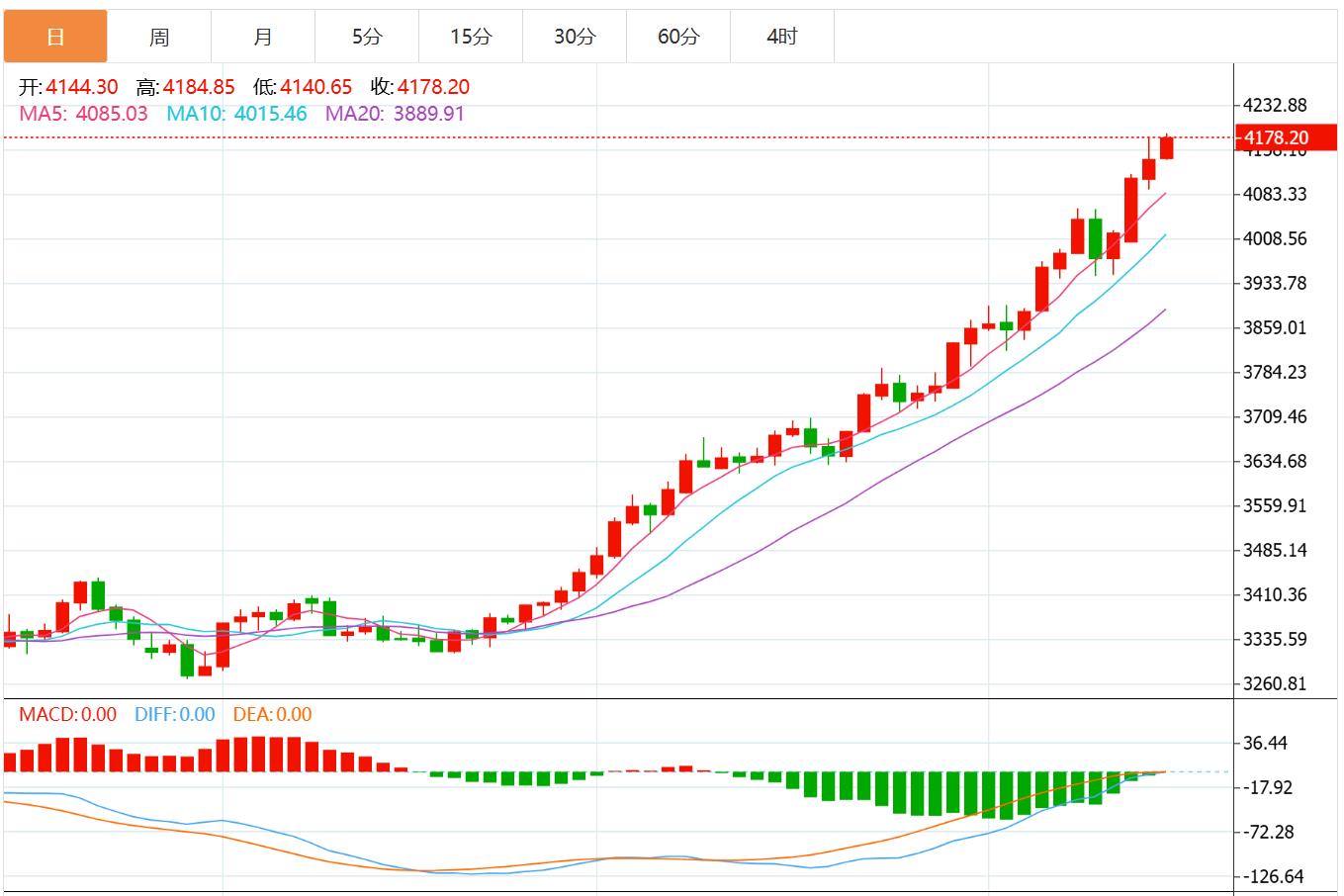 从技术层面看,过去七周左右的上涨行情始终沿着一条向上倾斜的趋势线支撑展开。此外,金价在突破4055-4060美元阻力区域后,周一晚间进一步强势冲破4100美元关口,这巩固了黄金的短期看涨前景。