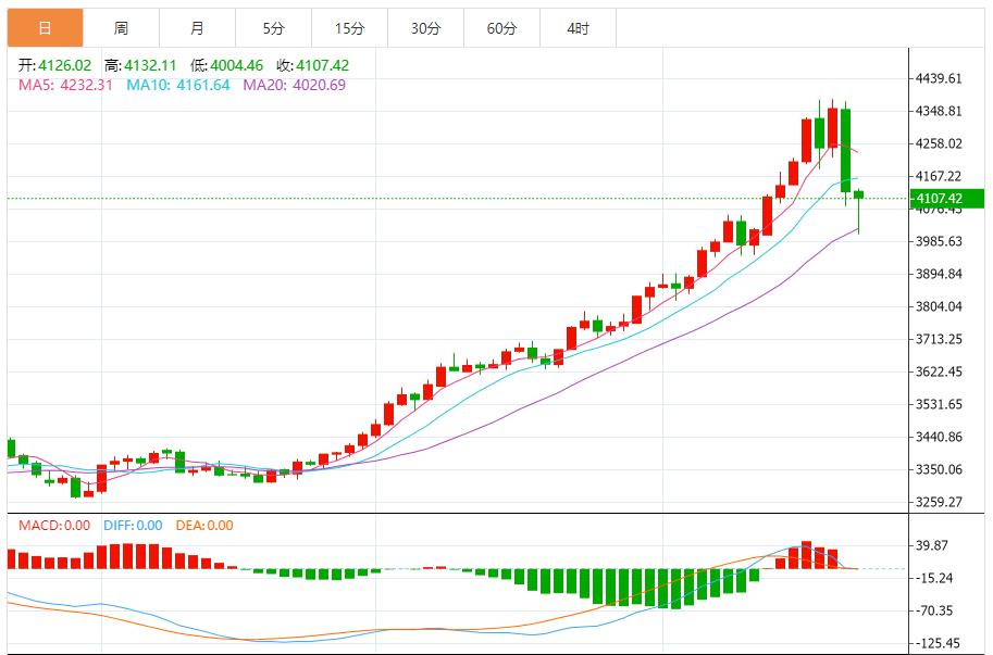 周三(10月22日),现货黄金目前位于4106.64美元/盎司附近,跌幅为0.46%。