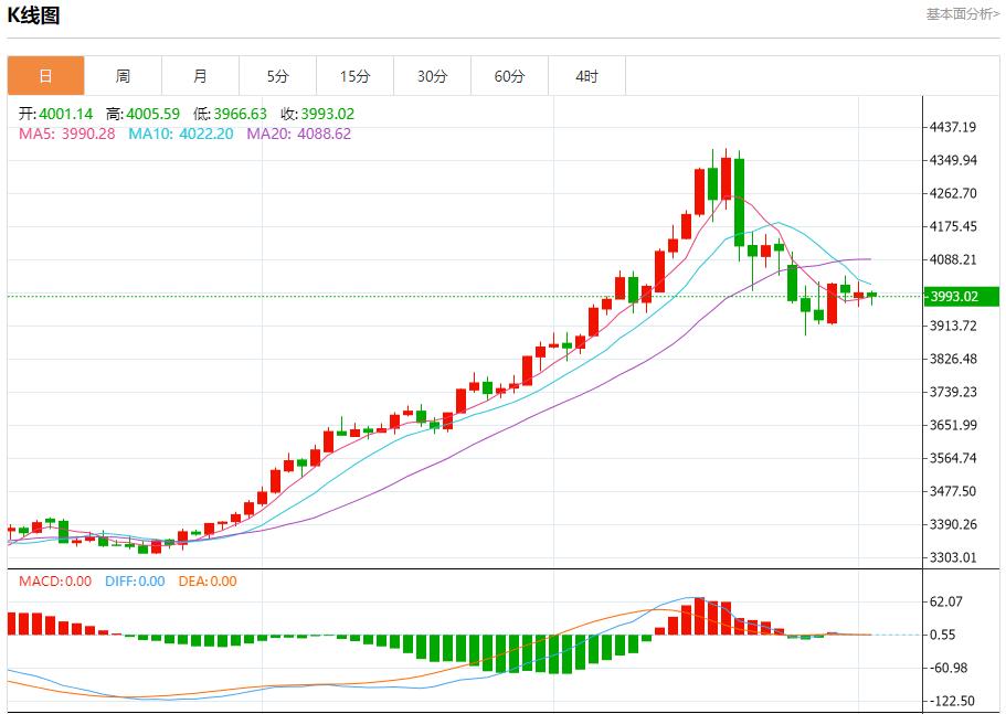 周二盘中,现货黄金报3989.54,跌幅0.29%。