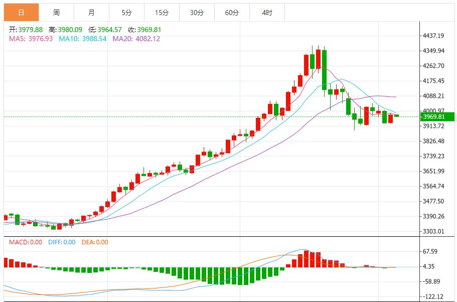 周四(11月6日),现货黄金目前位于3969.94美元/盎司附近,跌幅为0.23%。