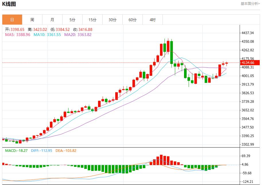 周三盘中,现货黄金报4134.71,涨幅0.20%。