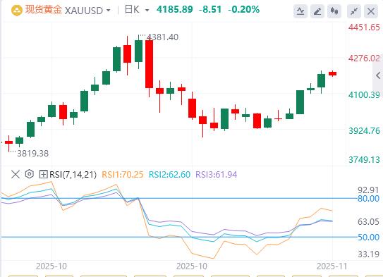 值得注意的是,虽然金价仍处高位,但10月以来的两周调整有效缓解了压力。10月份国际现货黄金的暴跌不再被视为泡沫破裂,而是投机者过快推高金价后的自然修正。许多投机者追高入场,一旦察觉风险便匆忙平仓,导致了回调。后续走势将取决于美国经济数据与美联储政策动向。