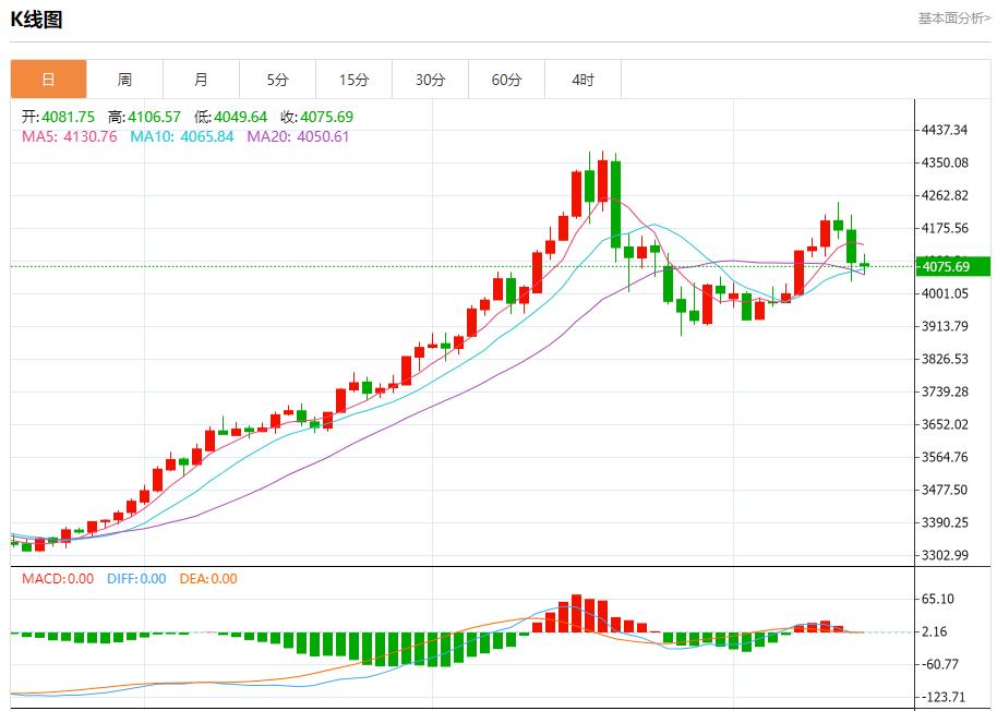 周一盘中,现货黄金报4075.13,跌幅0.22%。