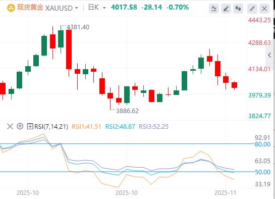 11月18日,周二,黄金连续第四天面临一定的抛售压力,回落至前一天触及的约4000美元低位,接近一周半的低点。交易员们一直在缩小对美联储(Fed)12月再次降息的押注,这反过来被视为削弱这种无收益黄金的关键因素。然而,美元(USD)在对美国政府史上最长停摆导致经济动能减弱的担忧下,难以吸引后续买入。这一因素,加上普遍存在的风险避险环境,可能为避险商品提供一定支持,帮助限制进一步的损失。