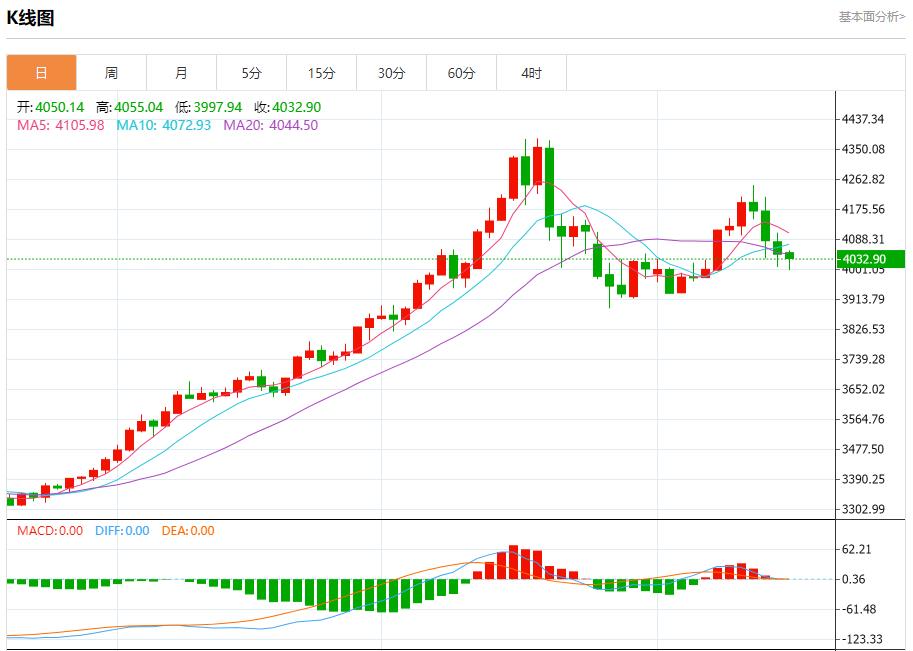 周二盘中,现货黄金报4032.90,跌幅0.31%。