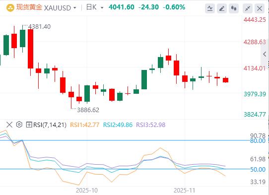 SIAWealthManagement首席市场策略师ColinCieszynski表示,我对本周黄金走势持乐观态度。金价从4000美元的心理关口反弹,看起来有望继续在4000-4200的交投区域内再次攀升。由于感恩节假期,本周美国市场交易将会清淡。交投清淡的市场往往会放大单向波动,预计投资者更愿意持有黄金头寸而不是离场。