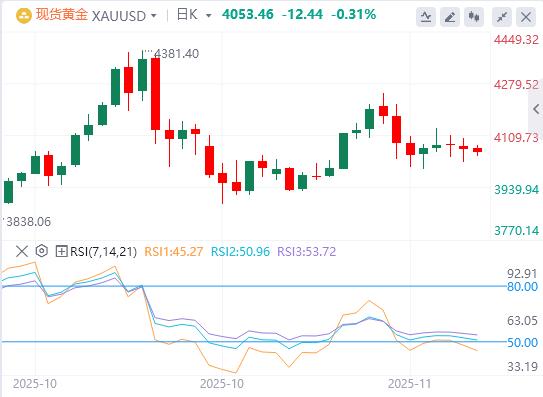 11月24日,黄金在周一欧洲早盘保持其报价基调,但缺乏后续表现,目前交易在4050美元上方,当天下跌0.35%。美联储官员近期发出的混合信号为12月再次降息提供了可能,而降息反过来也未能帮助美元(USD)在近期涨势基础上继续走势。除此之外,俄乌战争加剧和中东新一轮冲突带来的持续地缘政治不确定性,成为支撑这一避风港商品的关键因素。