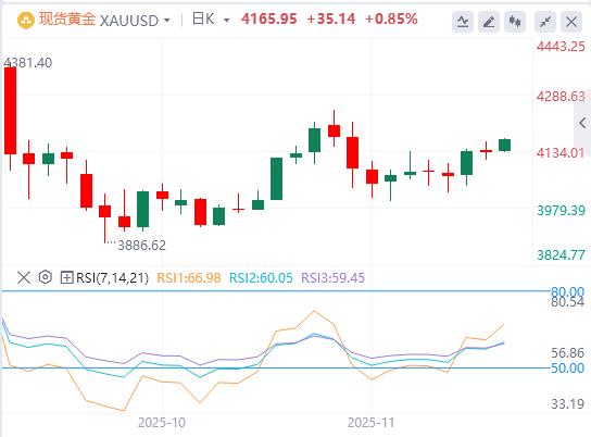 11月26日,黄金维持盘中上涨,接近一周半高点,该点在周三亚洲交易时段触及,且在美国美联储鸽派预期下,黄金似乎有望进一步升值。在周二公布的数据显示通胀趋于降温后,交易员加大了对美国央行再次降息的押注。此外,多位美联储官员支持进一步政策宽松的理由,这使美元(USD)跌至一周低点,成为无收益黄金的顺风。