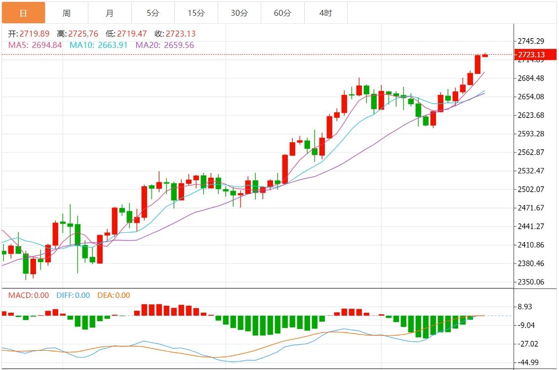 周一亚盘,黄金价格(XAU/USD)周一连续第五天走高——也标志着前八天上涨的第七天——并在亚洲时段攀升至2,732-2,733美元区域附近的历史新高。这一上涨验证了周五突破2,700美元关口,并在宽松的货币政策环境中有利于看涨的交易员,这往往有利于无收益的黄金。除此之外,持续的地缘政治风险和美国政治不确定性支持了避险贵金属近期进一步升值的前景。