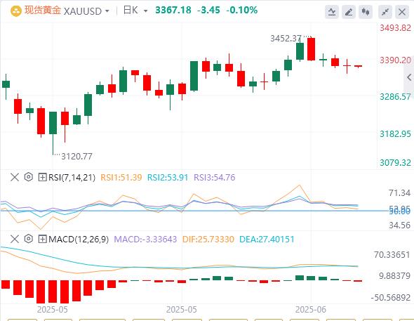 由于投资者不愿将金价推高至3400美元以上,黄金此前在每周低点3347美元附近盘整,为进一步回调打开了大门。RSI指标表明,随着黄金横盘整理,买家正在失去动力。
