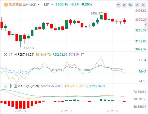 6月23日,黄金价格(黄金)周一在欧洲时段的前半段保持负面偏见,目前交投于其每日区间的低端附近。美国周日对伊朗核设施的袭击增加了中东发生更广泛冲突的风险,并有利于美元(USD)作为全球储备货币的地位。此外,美联储(Fed)的鹰派信号进一步支撑了美元,并有助于推动资金流离无收益的黄金。