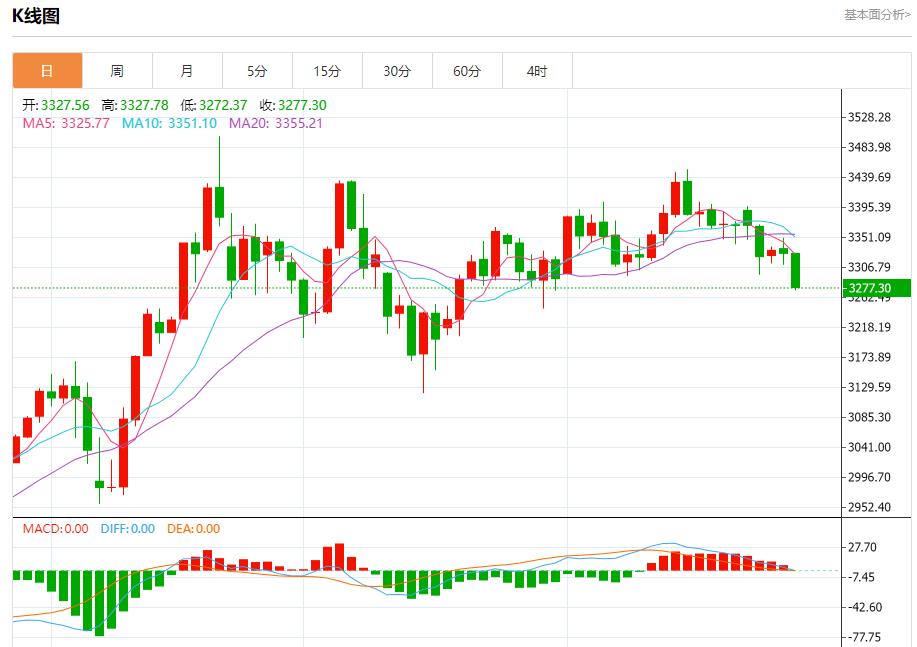 技术点评:RSI技术指标小于中性区域50。MACD技术指标处在其信号线之下看多。MACD必须突破其零线,才能预期出现进一步下行。此外,价位低于其20天及50天移动平均线(分别位于3357.70和3321.67)。