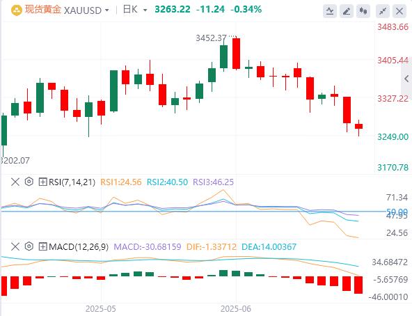 6月20日,周一亚市早盘,黄金扩大跌幅至3265美元左右。在美中贸易协议提振风险偏好后,贵金属跌至近一个月低点。投资者等待周一晚些时候的美联储讲话,以寻找新的动力。