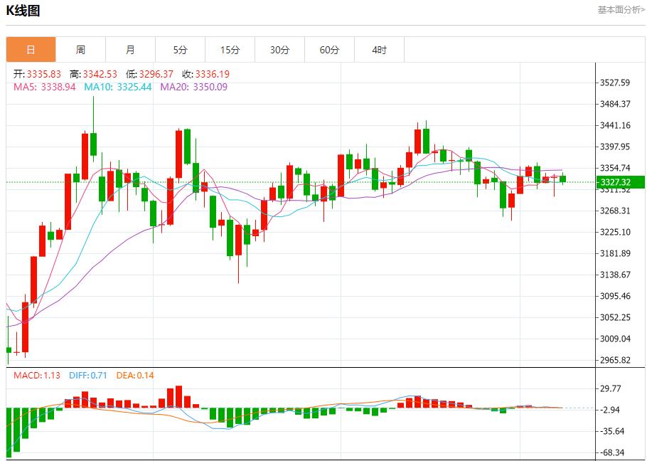 周二盘中,现货黄金报3326.42,跌幅0.29%。