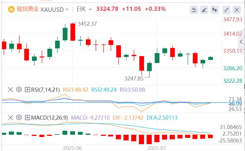 7月10日,周四欧市盘中,黄金价格周四连续第二天保持积极偏见,尽管缺乏后续买盘,因此在准备延续隔夜从一周半低点的反弹之前需要谨慎。在上周四公布乐观的美国就业数据后,交易员削减了对美联储(Fed)今年降息次数的押注。此外,周三公布的6月FOMC会议纪要显示,由于美国关税引发通胀担忧,只有少数官员认为利率最早可能在本月下降。这对美元(USD)有利,对无收益黄金不利。