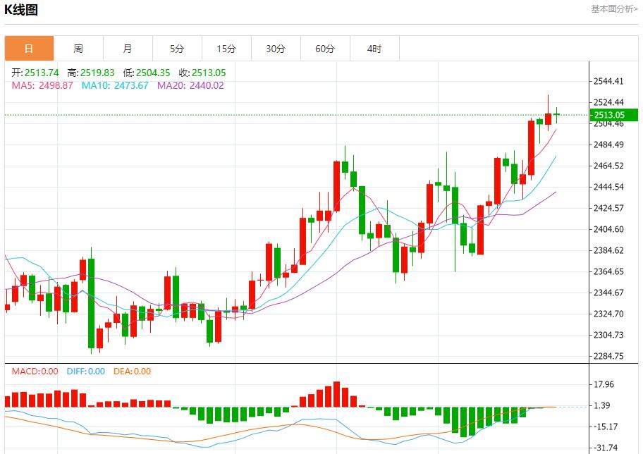今日分析:在2500.00之上,看涨,目标价位为2530.00,然后为2546.00。